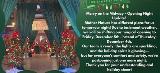 Join us for 12 nights of dazzlings lights and holiday activities as the Fairgrounds is transformed with spectacular light displays, twinkling lights and themed silhouettes. Each night will be packed with holiday entertainment in our Holly Music Hall & Theater, where you can enjoy local groups performing seasonal tunes and nightly Christmas movies! Stop by Santa's Village and experience the magic of the North Pole and don't forget your pictures with Santa himself! Take a walk thru our Storybook Stroll featuring "A Charlie Brown Christmas" by Charles M. Schulz and so much more!